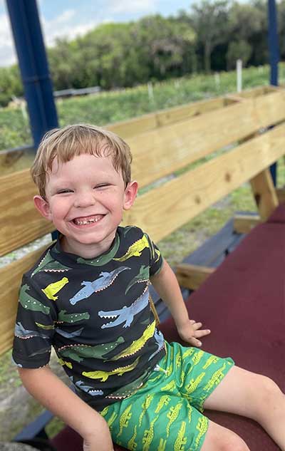 He will eat usually anything! His FAVORITE thing is playing with his farm animals and pestering his older sisters, he doesn’t have many words but always lets you know what he needs.