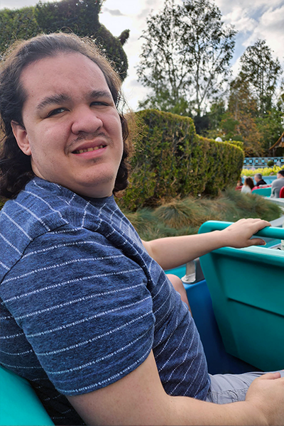 My son has limited verbal skills and speaks mostly with gestures and with expressions and some words. It took the lockdown and going to virtual school for us to finally understand him fully. He can read, he can write, and he has a lot to say. Dane is funny, sweet, and kind. He has a very strong sense of right and wrong. He never wants anyone to be unhappy or sad. He thinks everyone deserves to live their lives in a way that makes them the most happy. Like with many of our kiddos, he has a lot of barriers that keep him from doing things. He’d love to travel but severe anxiety keeps him from getting on a plane. That being said, he loves Disneyland and goes as often as he can. Though he only stays for his favorite rides! Small world is his favorite especially the “Mexican” part because it reminds him of the Mexican half of his family. He is such a Disneyland fan (we all are) that he once gave someone advice on how to navigate the entire park including recommending rides he knows are good but won’t ride! I was floored! I can’t even begin to explain how much his being able to communicate has opened him to us and opened him to the world. He’s very smart and beats his behavior therapist at Reverse and checkers almost every time! I was a single mom most of his young life, but he is very lucky to have had strong role models in my dad and my new husband he calls “New Dad.”