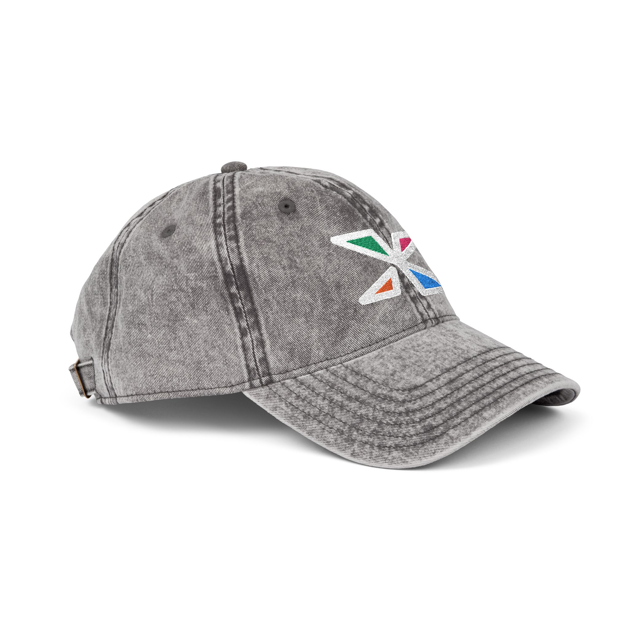 This vintage-style cap brings quiet character to everyday wear. Washed to a soft grey with intentional distressing, it feels lived-in from the first wear. An embroidered, slightly frayed multicolor emblem sits front-and-center, adding a subtle pop without shouting. The low-profile, six-panel shape and black sweatband keep the silhouette relaxed and comfortable. An antique-brass metal snap buckle lets you fine-tune the fit while reinforcing the old-school vibe. Wear it for slow mornings, road trips, or the kind of afternoons that end with a campfire and good conversation—this cap slips into your rotation like it’s always belonged there.
