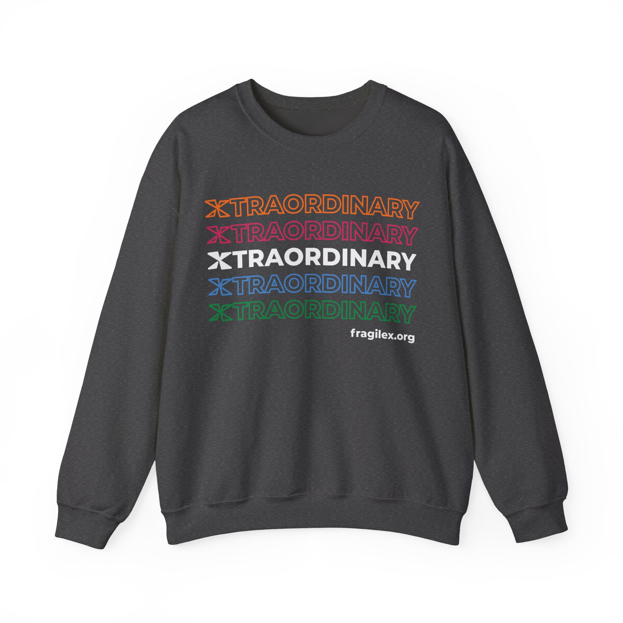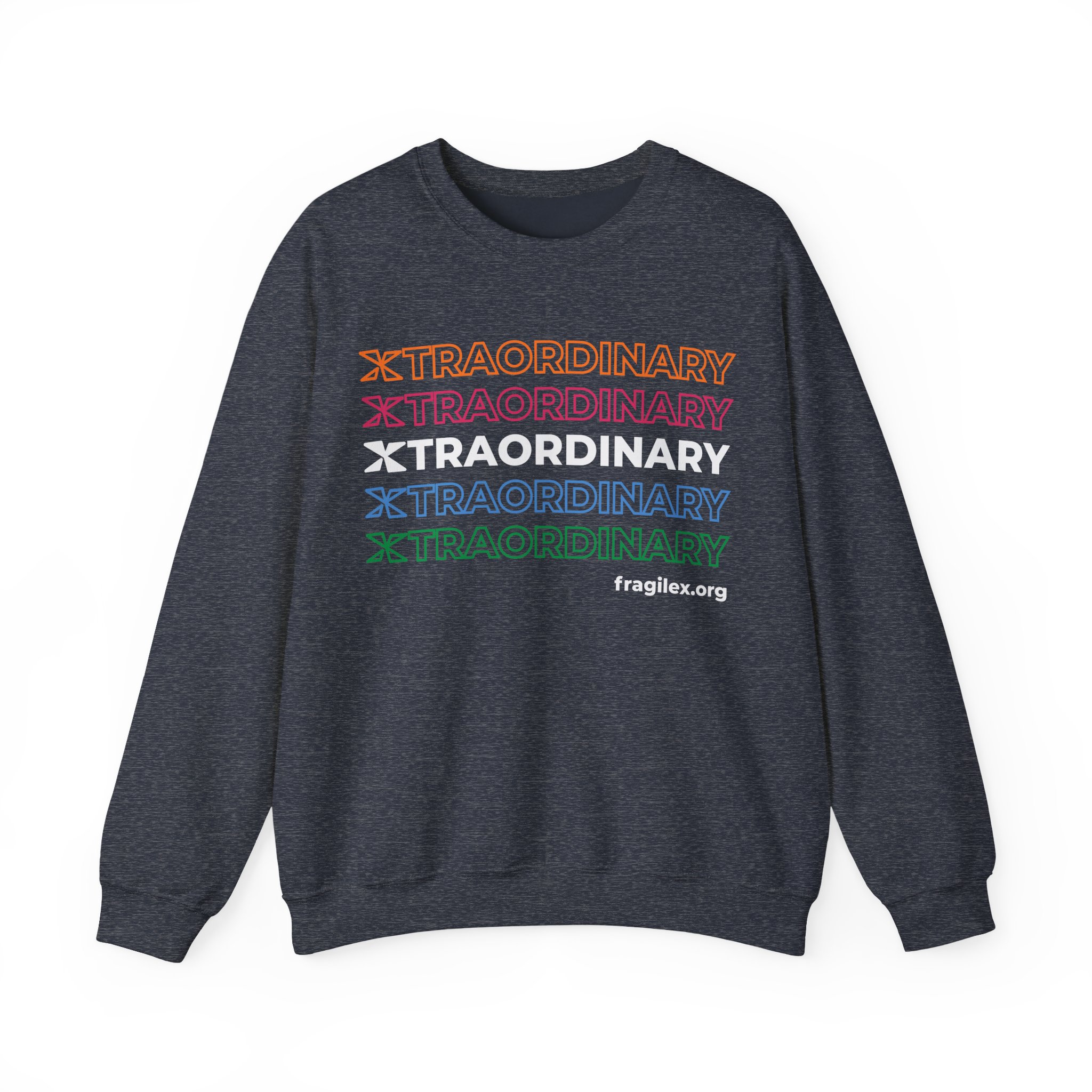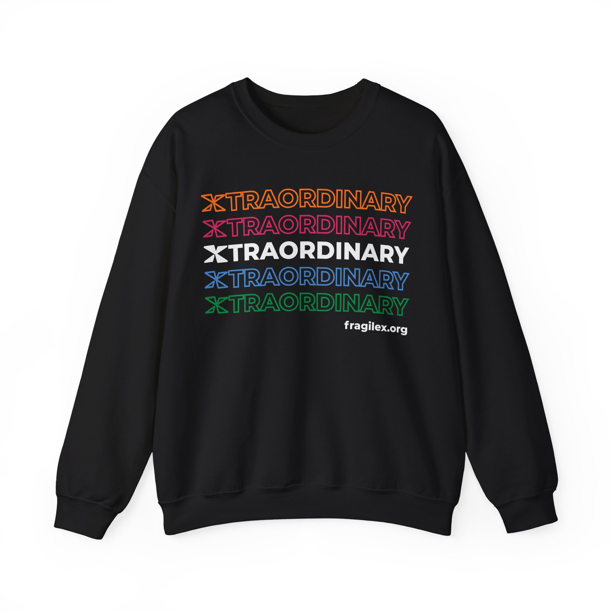 Order your Xtraordinary Crew Neck Sweatshirt now and be part of something truly special. Wear it with pride, knowing that your fashion choice is helping to create a brighter future for those with Fragile X Syndrome.